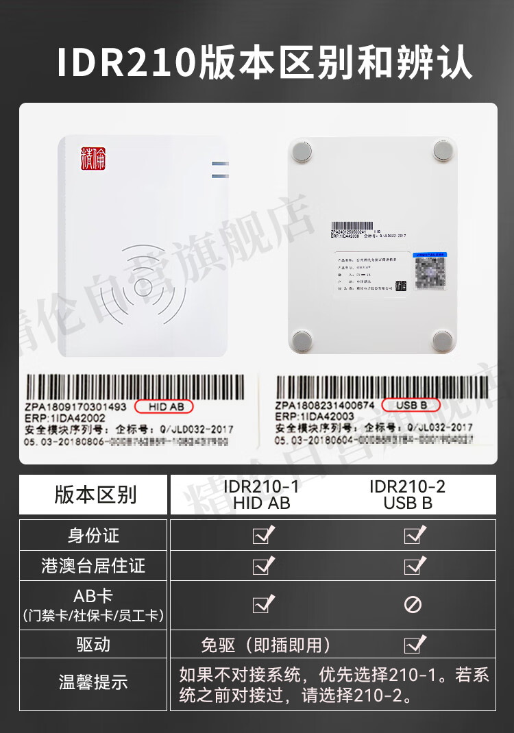| 认证型号 | idr210-1 免驱版HID AB 支持IC卡 |