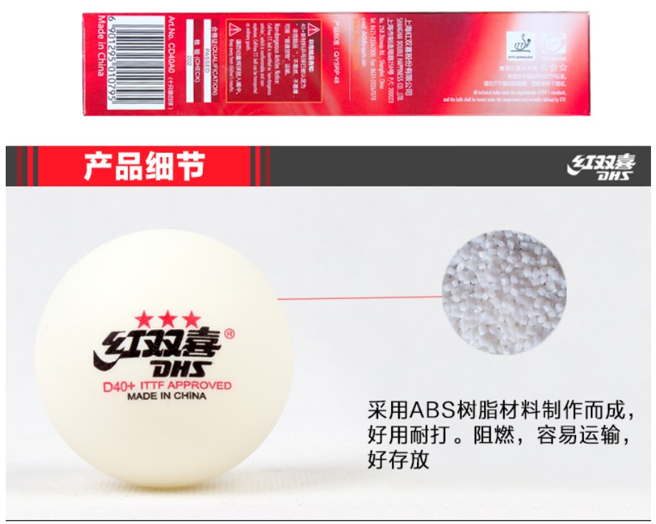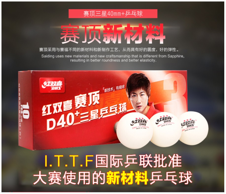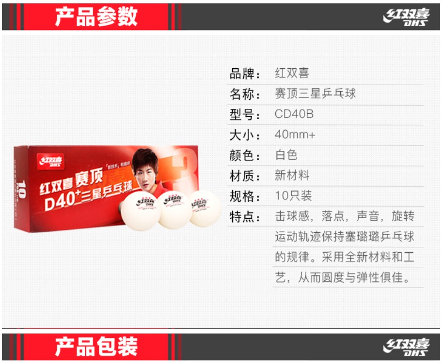 红双喜 乒乓球 3星球 乒乓球 红双喜赛顶40+三星乒乓球 比赛训练乒乓球 白色 10只/盒