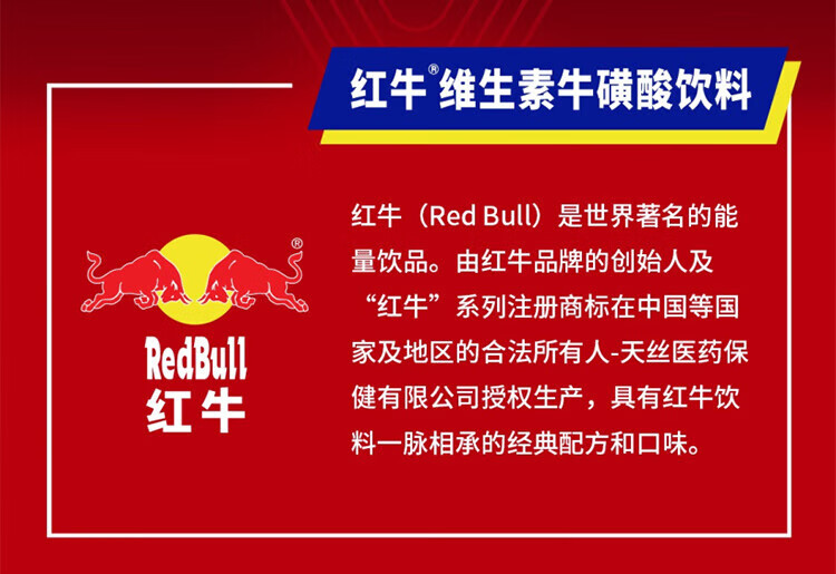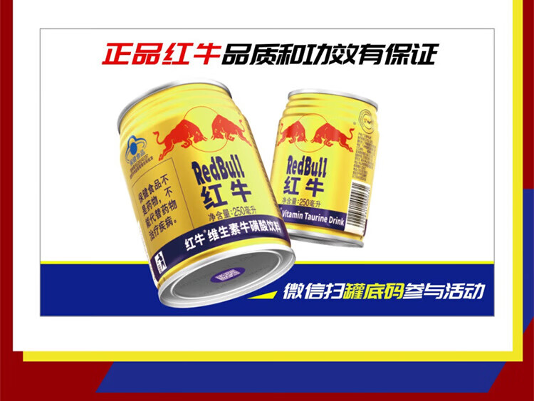 红牛功能饮料 红牛维生素牛磺酸饮料 250ml*24罐/箱