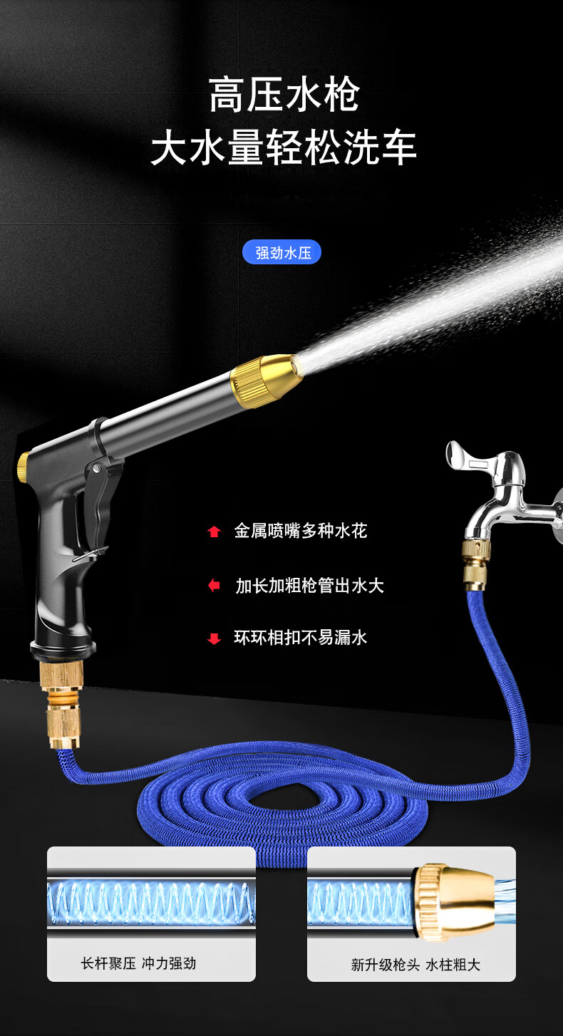 悦野 洗车水枪高压水枪家用水管软管浇花喷水枪汽车神器清洁工具15米